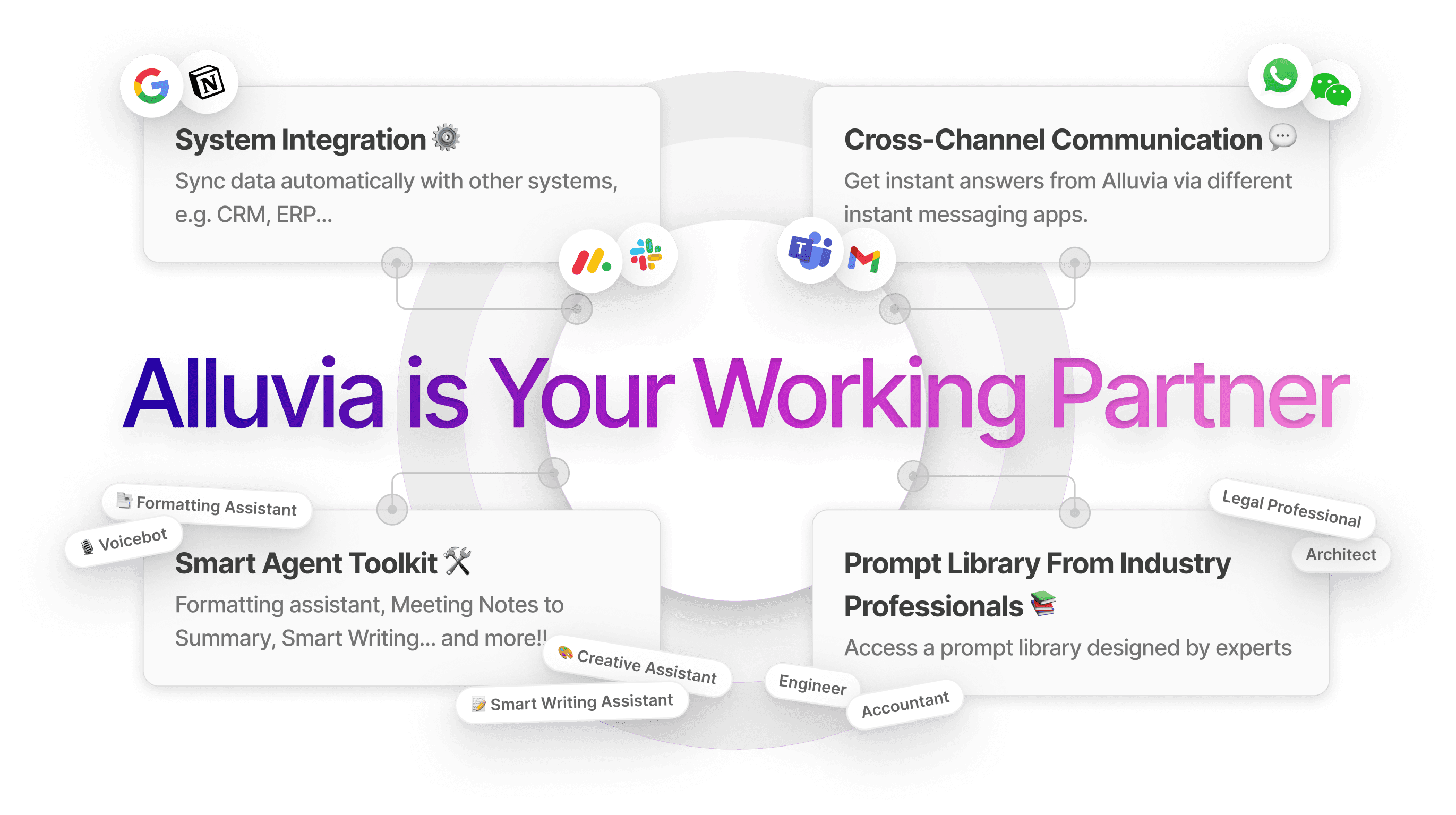 Alluvia goes beyond text generation. We provides a Smart Agent Toolkit that supports diverse roles and industries.