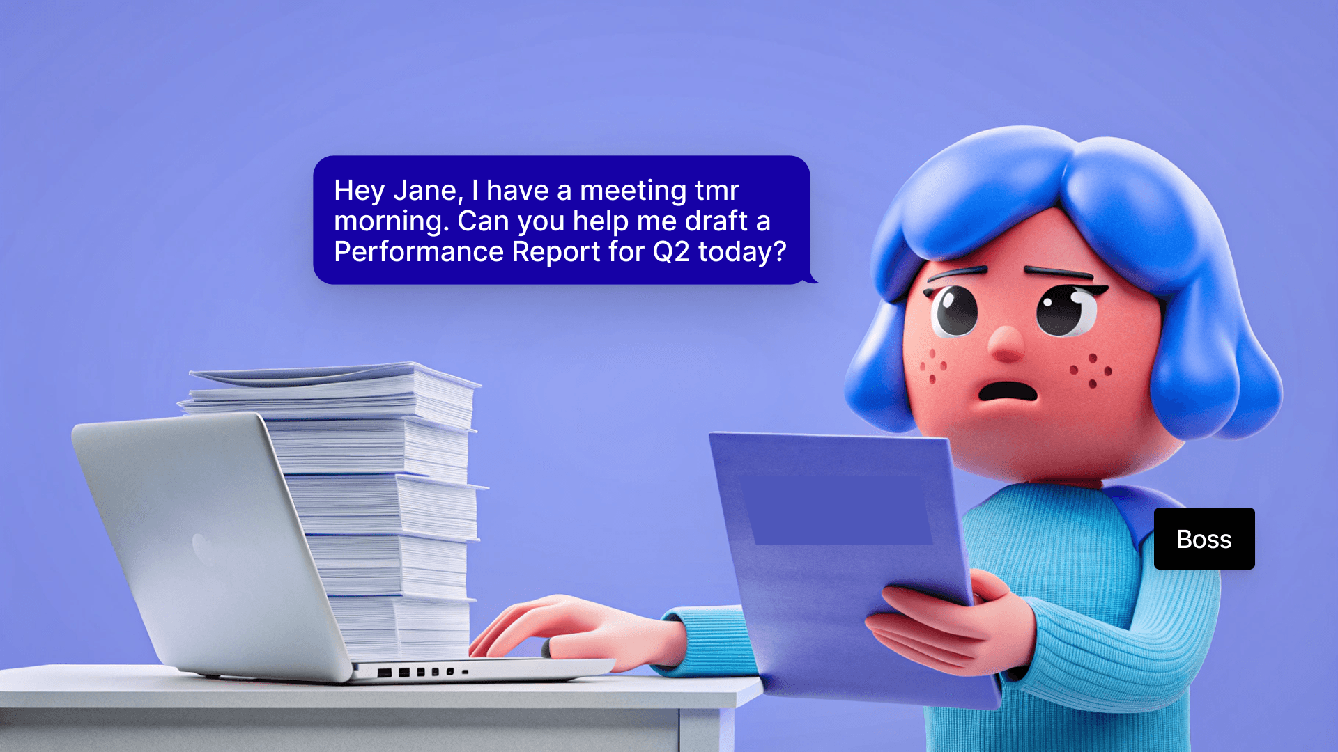 Her boss needs the performance report tonight. The request sounds simple but Jane knows that not easy. 🤯