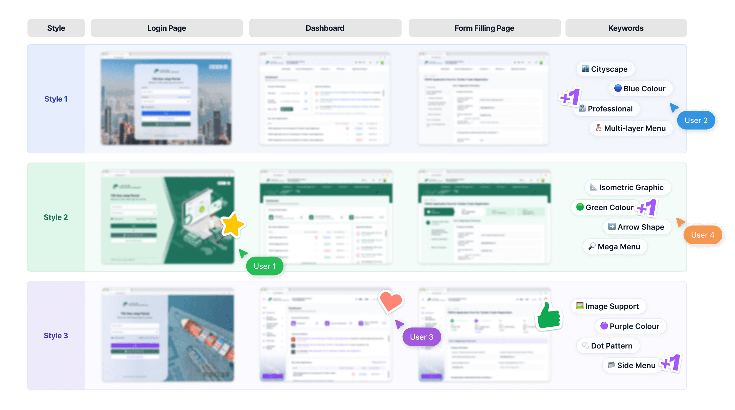 To address the identified issues, we presented three distinct design styles to gather user comments, allowing us to ensure a design direction that resonates with their preferences.