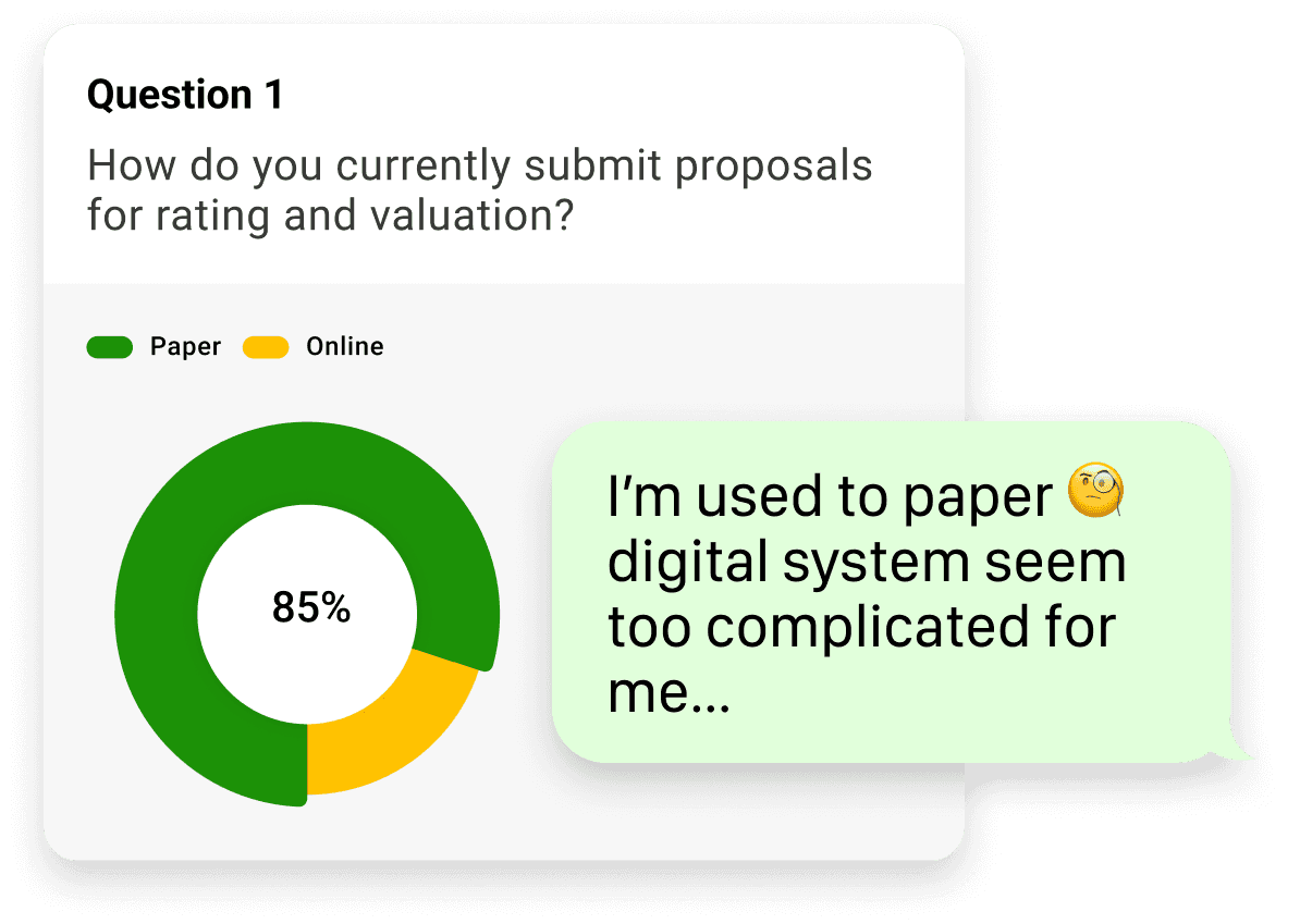 85% of respondents from the survey preferred paper submissions due to habit and lack of trust in digital systems. Users in the interview shared the same concern also.
